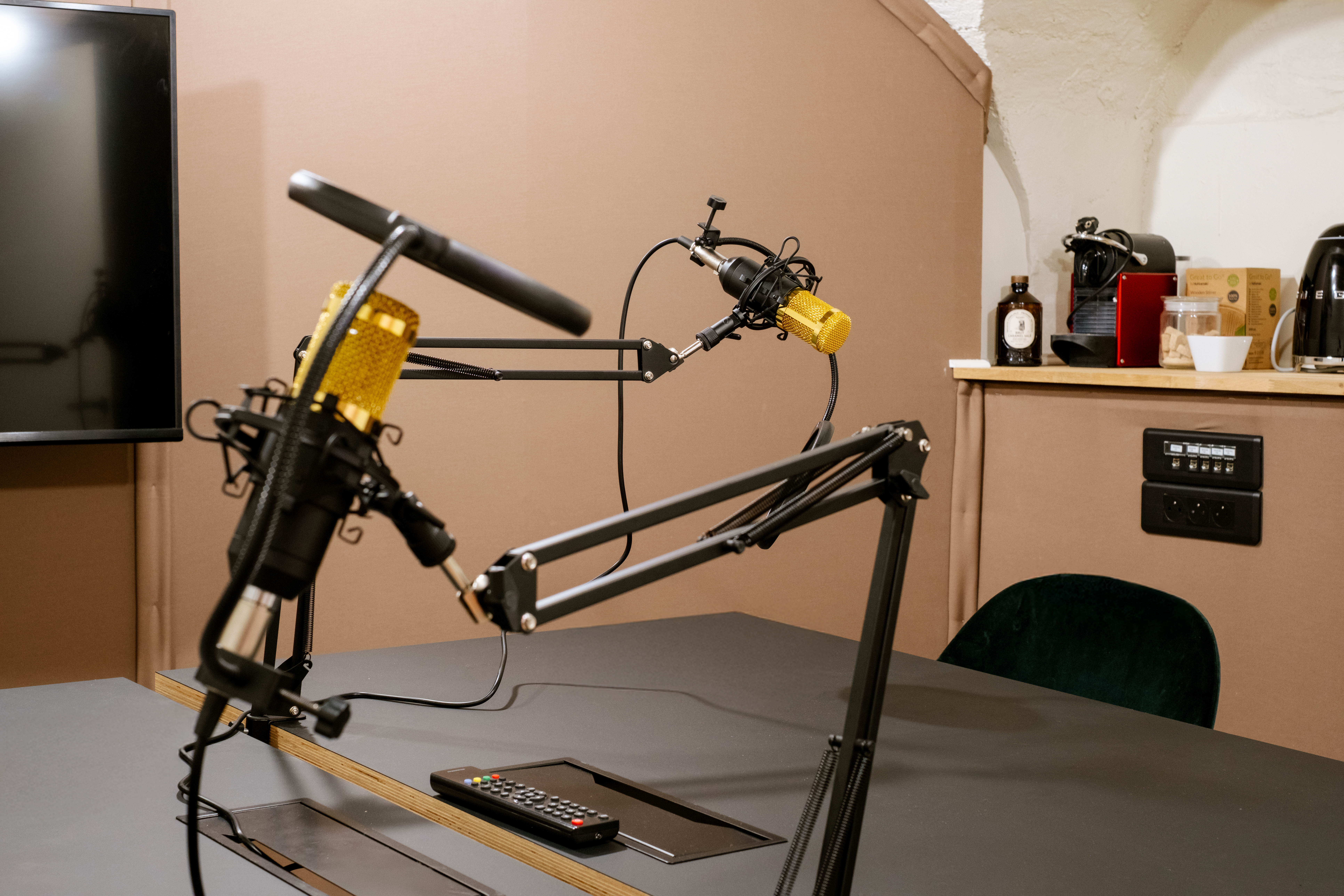 Équipée du Wi-Fi, d’un écran TV et de micros, elle garantit une expérience fluide pour vos enregistrements, interviews ou contenus audio/vidéo. Un espace café avec machine à café et thé est à disposition, et le coffee shop Jöro Kaffé, situé au sein de la Jöro House, prolonge l’expérience pour vos pauses ou rendez-vous informels.